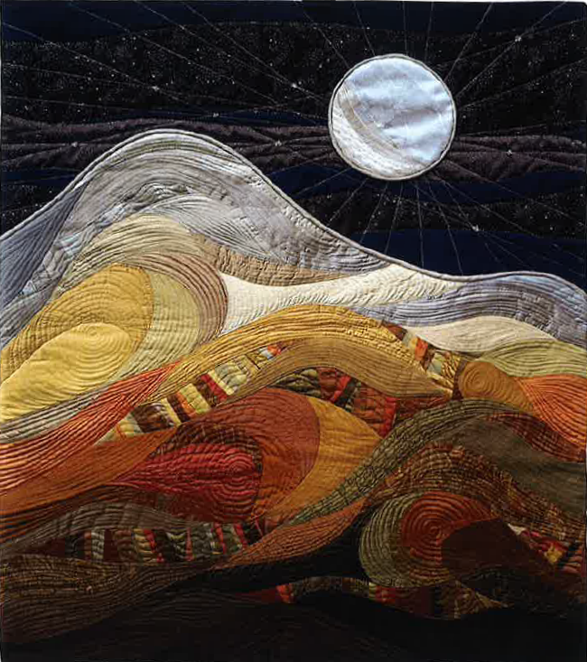 To create the Blending Poetry & Cloth exhibit, artists were required to reference a piece of poetry, song, or quotation in creating their composition. Seventy SAQA Oregon members entered the competition, jurored by Patricia Clark, founder of Atelier 6000 Print Workshop in Bend, Oregon.