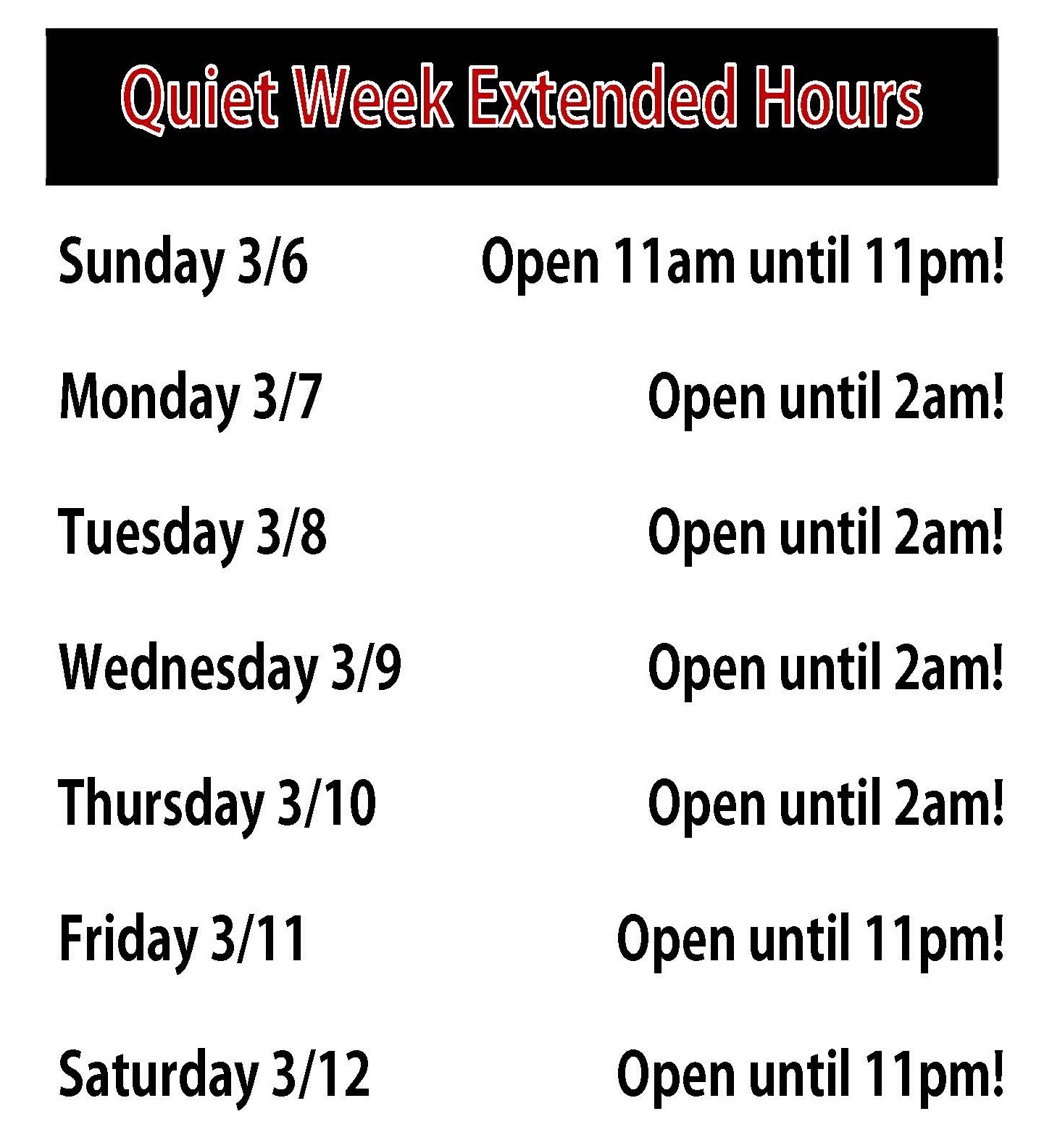 Thursday 6/9 – 8 AM to 2 AM*